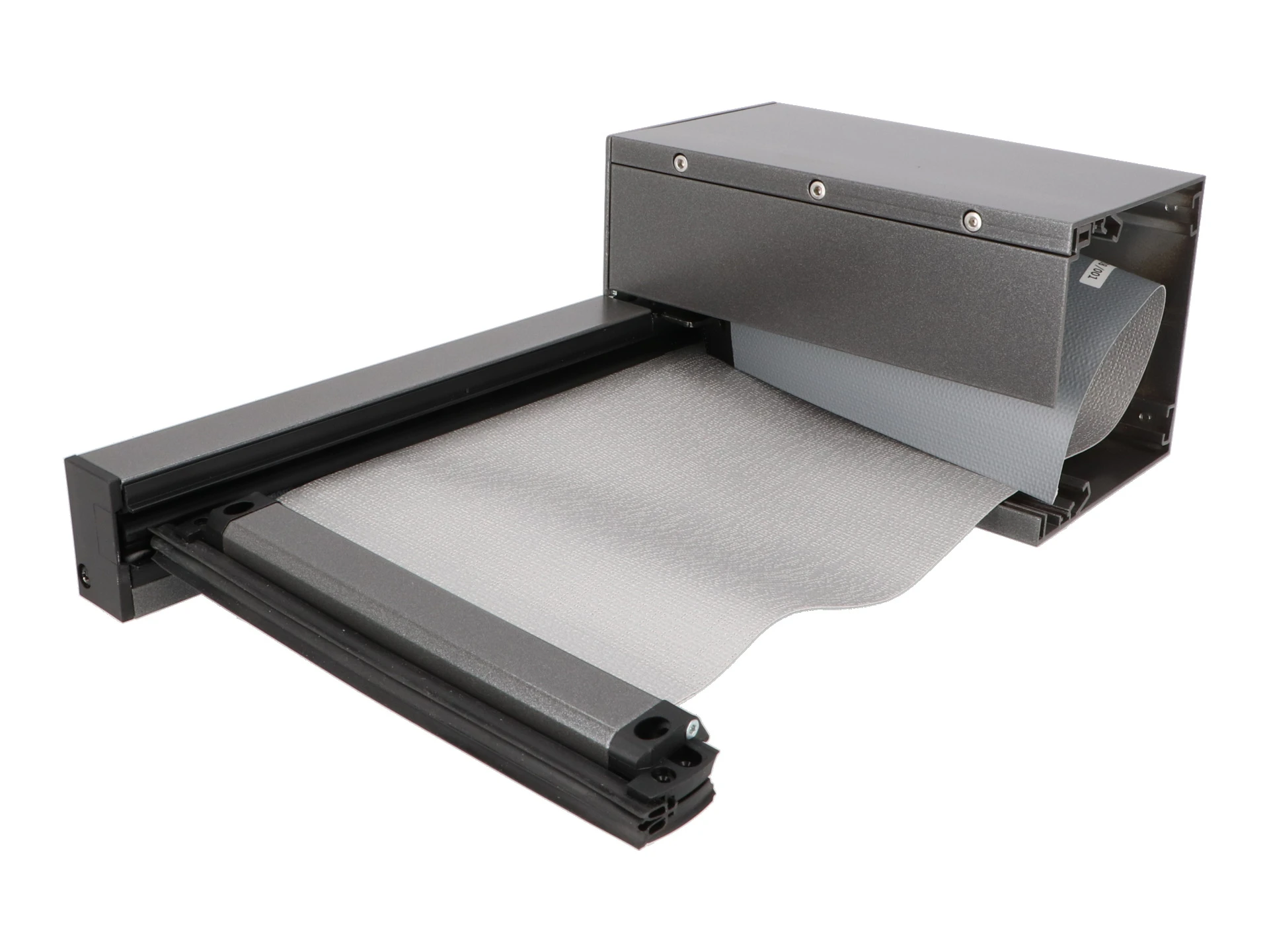 Die Horizontal-Verdunkelung ist ein horizontaler, innenliegender Sonnenschutz unter einer Lichtkuppel, die zugefahren einen Lichteintritt verhindert und den Raum verdunkelt. Statten sie elegant schlecht erreichbare Fenster aus.