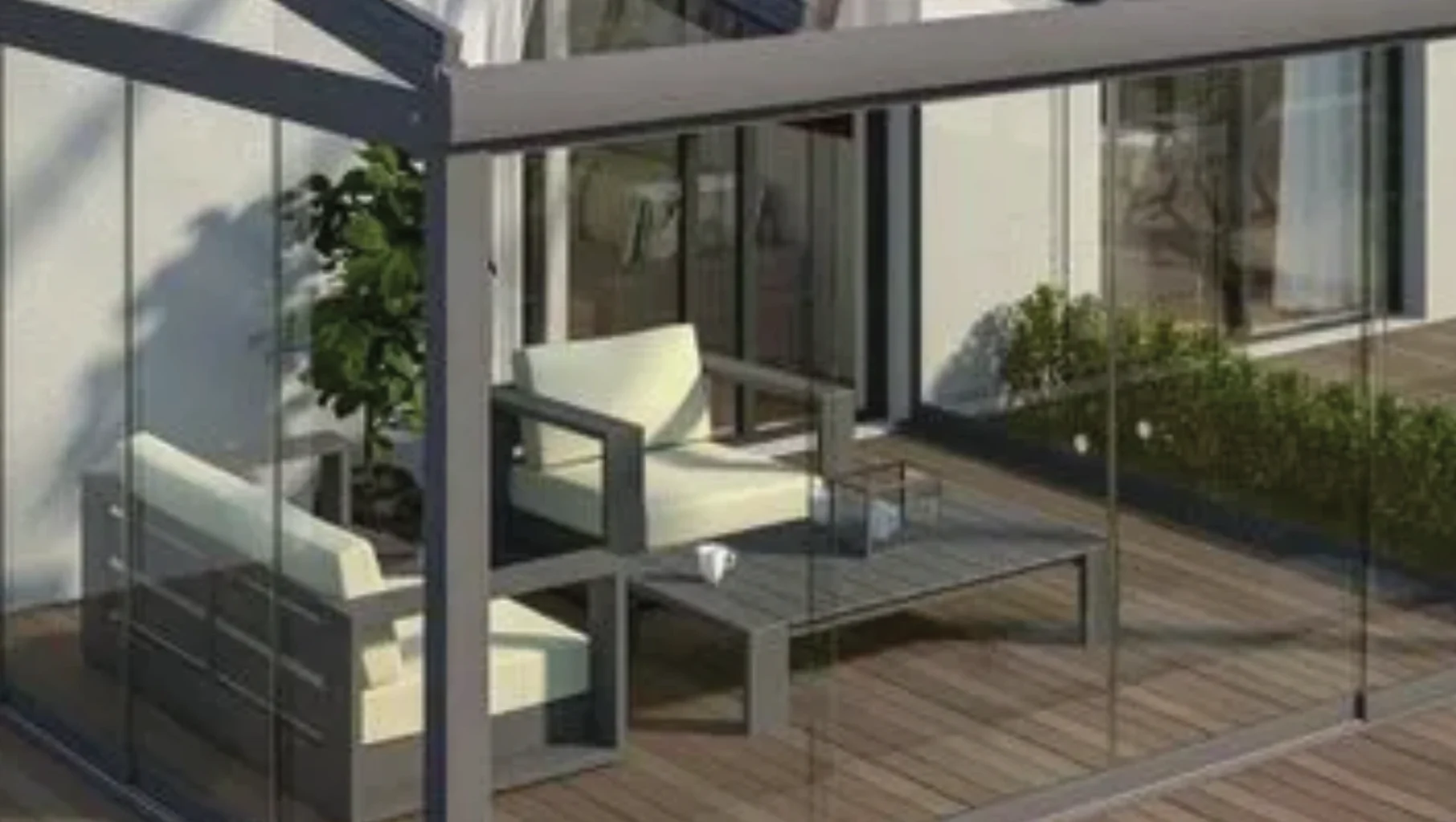 Seitlicher Wind- und Wetterschutz für Glasdächer